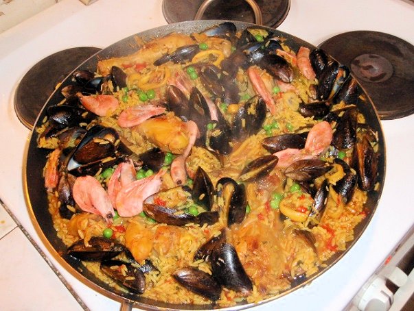 Seuraavaksi tutustuttiin espanjalaisiin ruuanvalmistusvälineisiin, kuten paellapannuihin ja buron-kannuihin ja niiden käyttämiseen espanjalaisessa keittiössä. Monipuolisesta espanjalaisesta ruokatarjonnasta oli valittu katalonialaisen paellan valmistamisen. Reseptinä kurssilla käytettiin abuela (isoäiti) Pagita Castells-Estradan paellan valmistusohjetta. Tämän ruokalajin myötä tutustuu myös monipuolisesti äyriäisiin, katkarapuihin, simpukoihin ja mustekalaan. Kurssilaisilla oli suuri kiinnostus oppia käsittelemään ruoka-aineita, jotka ovat meille suomalaisille vieraampia. Paellassa on monia valmistelevia työvaiheita, joten kaikille kurssilaisille riitti puuhaa. Innokas puheensorina ja paellan herkullinen tuoksu täyttivät kotitalousluokan. Välillä maisteltiin perinteistä katalonialaista chorizoa (makkara). Tunnelma oli kuin espanjalaisessa keittiössä, tosin meillä oli kurssilla muutama innokas mieskokkikin mukana. Espanjalaisessa keittiössä suvun naiset täyttävät keittiön, ja pääkokkina häärää isoäiti.